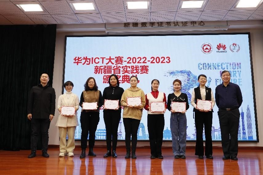 2023年3月20日下午,华为ICT大赛2022-2023新疆实践赛颁奖典礼在新疆大学博达校区信息技术综合实验楼106学术报告厅顺利举办,新疆大学教务处副处长李鹏教授、信息科学与工程学院副院长刘胜全教授,华为技术有限公司、深圳市讯方技术股份有限公司、北京博海迪信息科技股份有限公司等企业代表及学院参赛师生参加本次颁奖典礼。